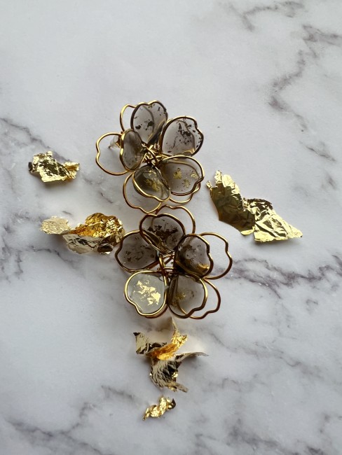 Boucles en acier inoxydable doré avec incrustations de résine colorée coulée à la main